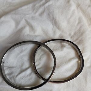 Bangle Silver Crystal Stack Hinge Bracelets Set of 2