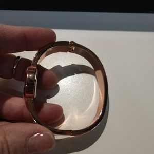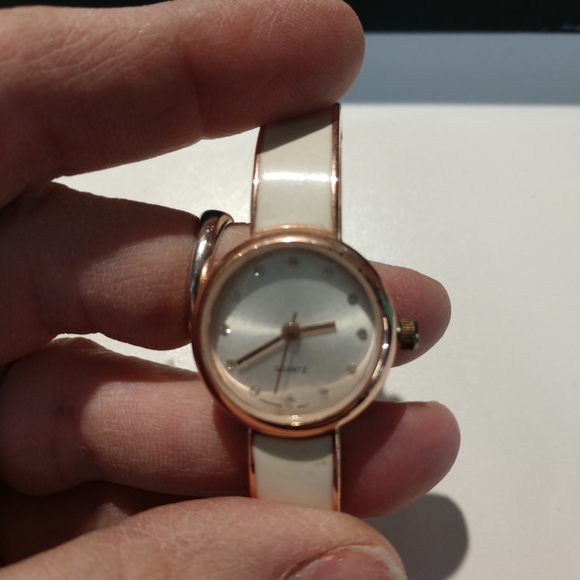 Bangle Watch with white enamel and rose gold plating, crystals at each station, working condition