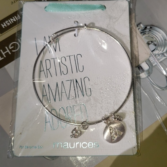 Bangle bracelet with 2 dangles and A with rhinestone dangle