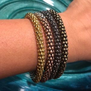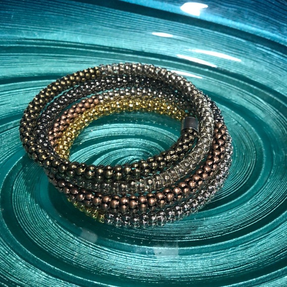 Multicolored brown, gold and sliver bangle bracelets