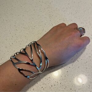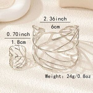 Bangle bracelet & Ring set Metal Leaf Design silver color
