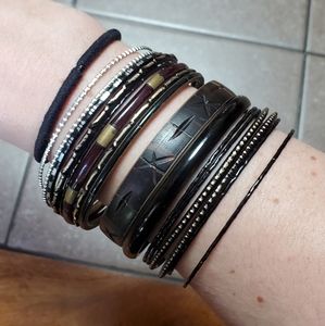 Stack of about 15 black, gold, & silver bangle bracelets from Forever 21. In excellent condition!
