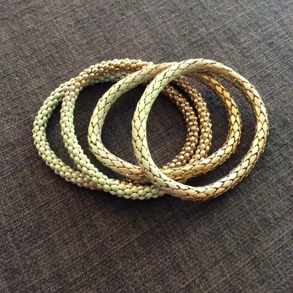 Mint and gold bangle bracelets