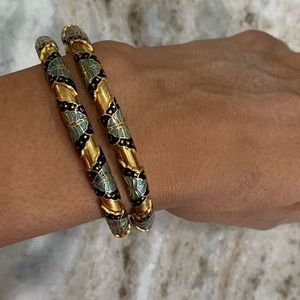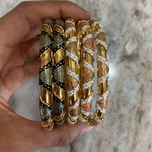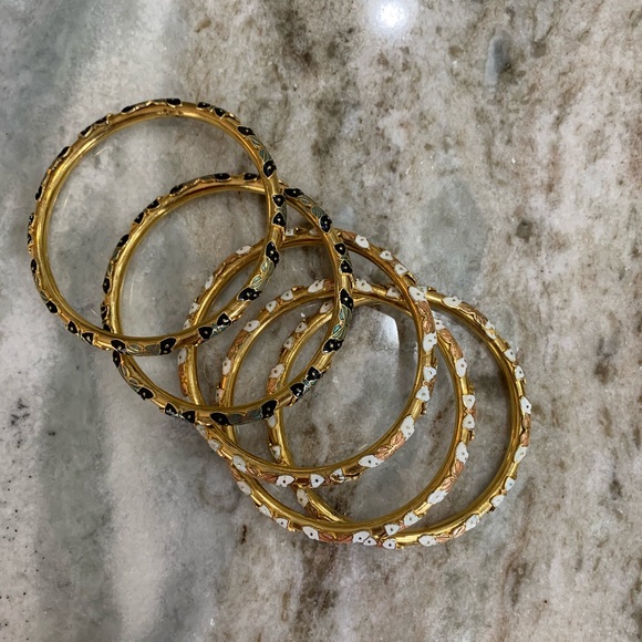 Beautiful gold tone bangle bracelets with butterfly detail. All 5 bracelets included.