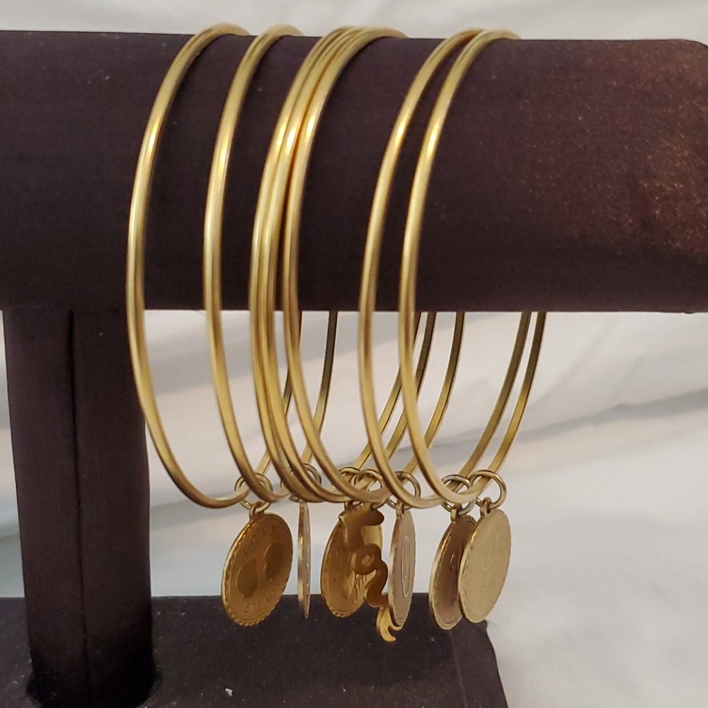 7 gold bangle bracelets w charms