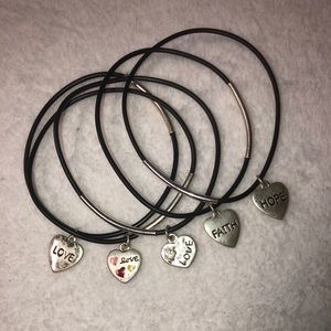 Black bangle bracelets with charms on each bangle! Super cute and can be dressed up or dressed down. Pre-owned, in good condition!
