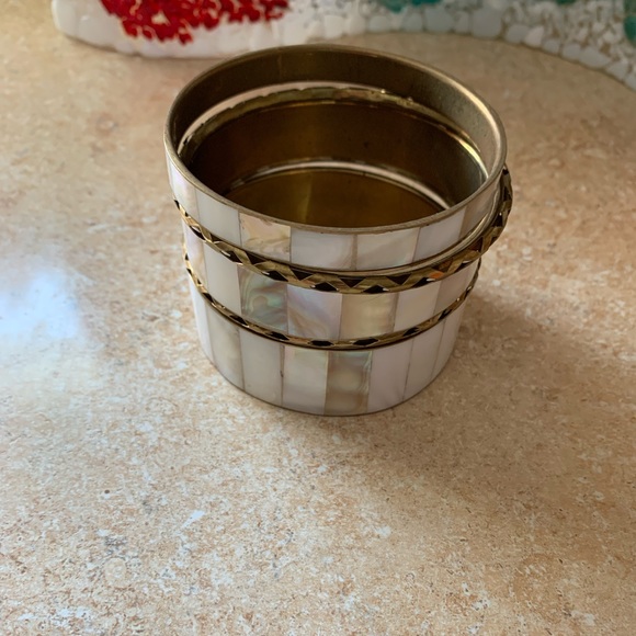 Set of five bangle brackets. Mother of pearl brass
