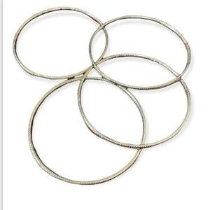 Bangle bracelets Silver Tone set of 4 shimmering marking inner and out Non tarnish excellent condition 8 inch inner circumference Width (each): 3“W