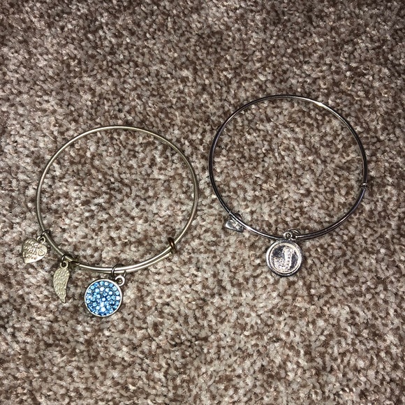 2 bracelets. 1-blue rhinestones 1-rhinestone letter “J”