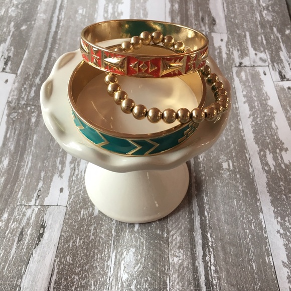 Bundle of bangles. The two aztec patterned bracelets are the ones being sold, the gold beaded bracelet is NOT included in the bundle.
