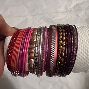 Bangle bundle of colors in the pinks, purples, and reds. Sixes vary between the bangles! Bundle is 45+ bangles!
