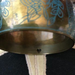 Gold and turquoise blue bird/owl bangle bracelet. Cute heart cut out inside. 2.75 in inside opening and width of the braclet.
