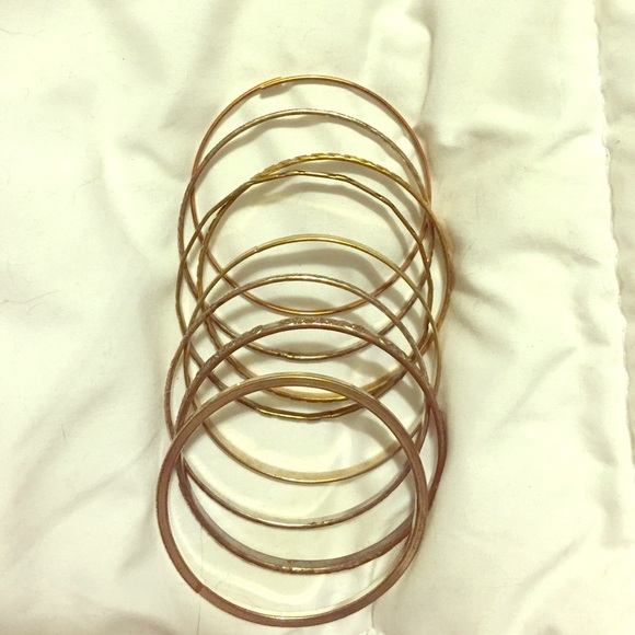8 piece bangle set. Silver and gold. One is broken as pictured but still wearable. Really really cute!!