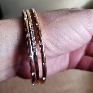 3 Rose Gold Tone bangles with crystals
