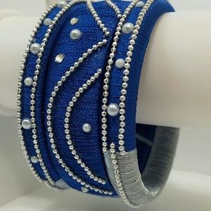 Materials Used: Bangle base, Silk thread, Rhinestones, Pearls.