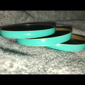 Three teal bangles, gold inside. Lightweight.