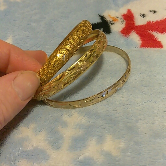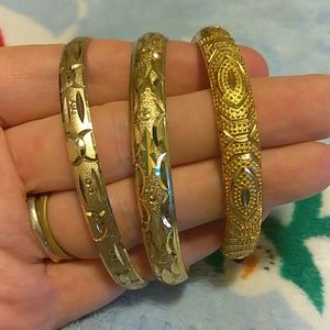 Gold costume bagles, you get all 3! I have an 8" wrist and their too small for me.