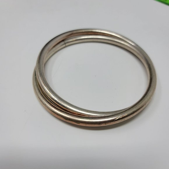 Pictures say it all! - Unique silver with hits of copper intertwined bangles