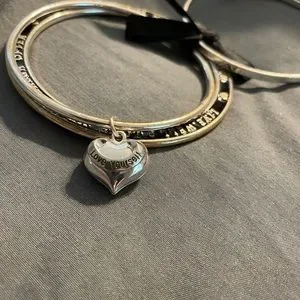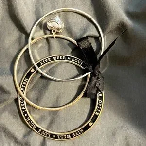 Live well love much laugh often bangle set of 3. Heart charm on middle bangle that says love yourself