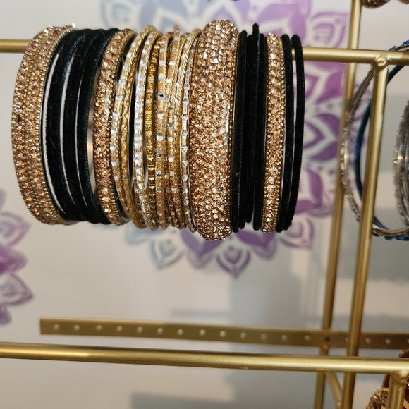 Bangles. Black velvet and gold. 10 Indian size