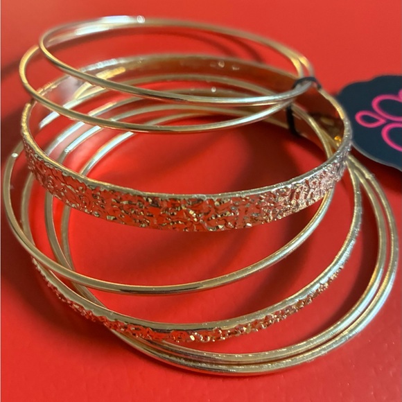Accessorize Your Beauty with this Set of 7 Gold Bangle Bracelets. Lead and Nickel Free.