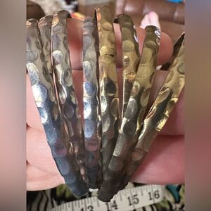 Bangles Silver (4) and Gold (4) Tone Metal Bracelets Hammered Finish