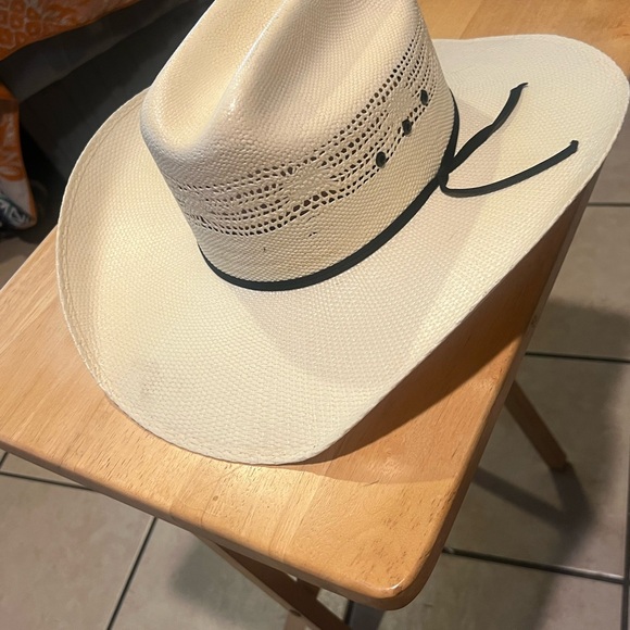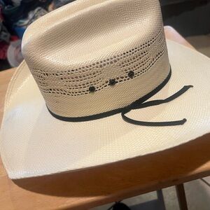 The Bangora Ranger Hat is a stylish cowboy hat designed for men, featuring a beige color that exudes a rugged and adventurous look. Made by the reputable brand Ranger, this hat is the perfect accessory for those who enjoy a classic western style. With a size of 6 7/8, this hat is sure to fit comfortably and securely while adding a touch of sophistication to any outfit.