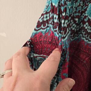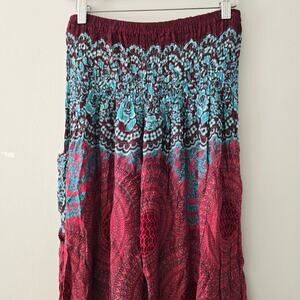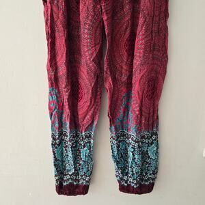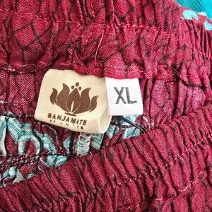 Banjamath Scarlet Red Turquoise Paisley Haram Pants Elastic Waist Ankle Size XL