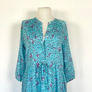 Anthropologie Banjanan Bazaar Turquoise Blue Pansy Floral Long Sleeve Maxi Dress. Size Small. Excellent used condition.