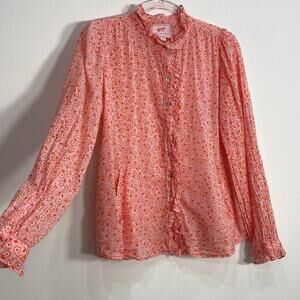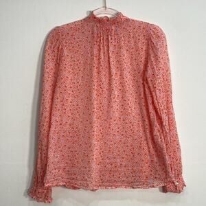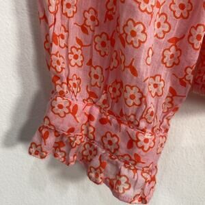Banjanan Blouse Scattered Flowers Lightweight ruffles Women's Small Pink