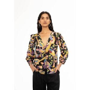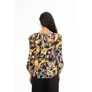 Banjanan Elise Long Sleeve Top Blouse Jet Black Print BFA23TV662 XS Xsmall NEW