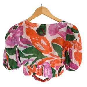 Banjanan Floral Aurora Top Short Sleeves V Neck XS