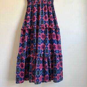Gorgeous "Iris" dress in an all-over floral print called "Shibori Clamp Dye Blueprint". Please note that the colors look a bit brighter than they are on all the pictures (including stock pics), they are more toned down in person though still striking.