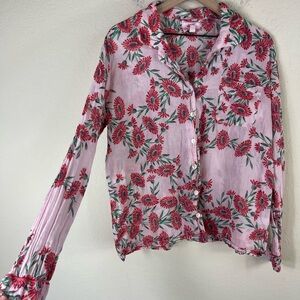 Banjanan Long Sleeve Floral Button Down Top in Dune Daisy Size Large