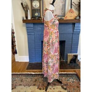 Banjanan M Alexa Floral Pink Green Maxi Tank Ruffle 100% Cotton Dress India Boho