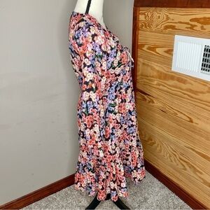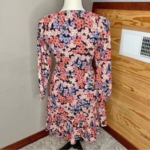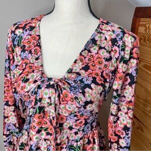 Banjanan Macaw Floral Butterfly Drawstring V-Neck Mini Dress Monarch Black XS