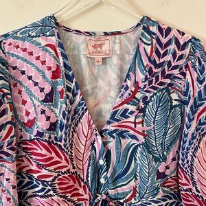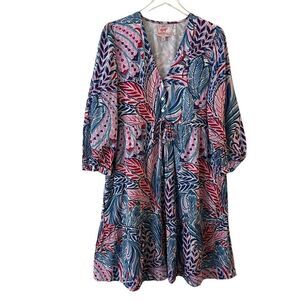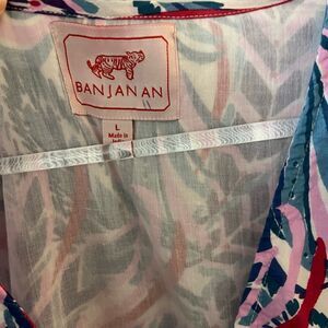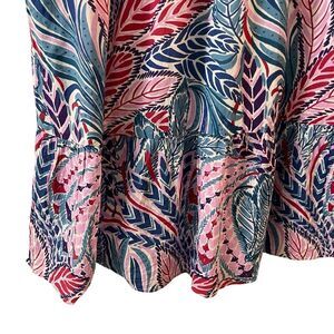 Banjanan Midi Length Puff Sleeve Dress Feather Chili Tropical print Size large