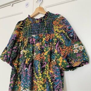 Banjanan Nicole Dress Brand new with tag. Retail $310.00 Color: Loki's Garden Black Named after the god of chaos, jokes and fun, the Nicole Loki’s Garden Dress is joyful and versatile. Featuring a fun print, hand-smoking details, side pockets, and short puff sleeves, this mini has a relaxed shape and ruffle hem. Add sandals and gold jewelry for a warm-weather getaway.
