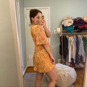 Gorgeous, comfy and so so soft vibrant yellow/orange/pink floral design mini dress from designer Banjanan
