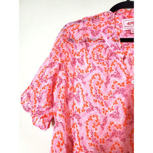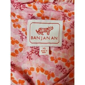 Banjanan Peasant Top Womens XL Floral Ruffle Sleeve Lightweight Gauze Pink front pockets
