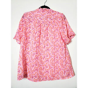 Banjanan Peasant Top Womens XL Floral Ruffle Sleeve Lightweight Gauze Pink