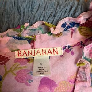 Banjanan Pink Bird Flower Print Boho Blouse Size S