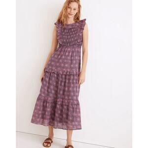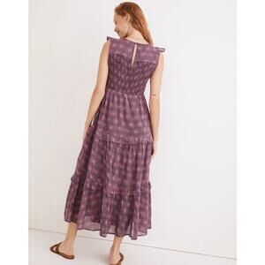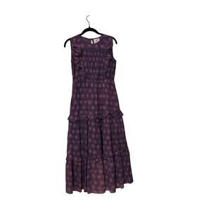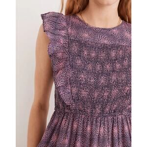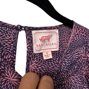 Banjanan Pink Blue 100% Cotton Iris Smocked Floral Midi Dress Size Small