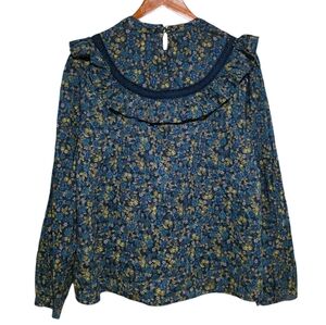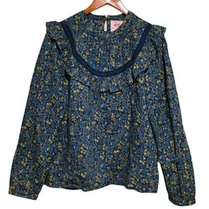Banjanan Ruffle Bib Blouse in Hedgehog Dark Denim Size Large