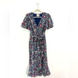 Banjanan Ruffle-sleeve cotton wrap dress in wildflower floral print