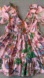 Pink cotton (100% Cotton). V-neck. Short puff sleeves. Back zipper closure.