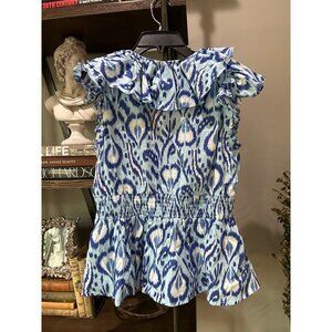 Banjanan Susie Print Ruffle Sleeve Blouse Ikat Bosphorus Womens Size Large