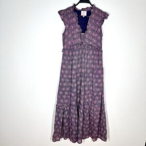 Banjanan Sz S Constance Dress Petal Power Blueprint Print Cotton Voile Maxi
