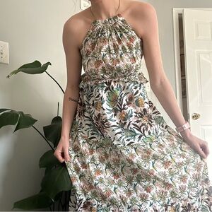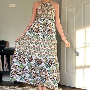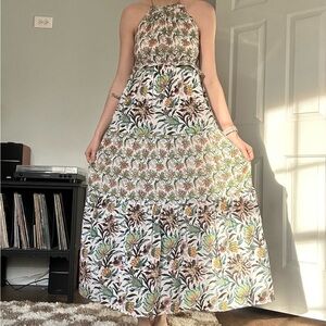 Banjanan Two-tone Mixed Pattern Patchwork Floral Halter Maxi Dress Open back