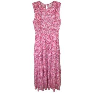 Banjanan, Women’s ‘Iris’ Floral Smocked Tiered Maxi Dress - ‘Pink Meadow’ Medium